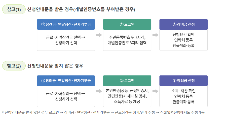 - 국세청에서 받은 근로장려금 신청 안내문에