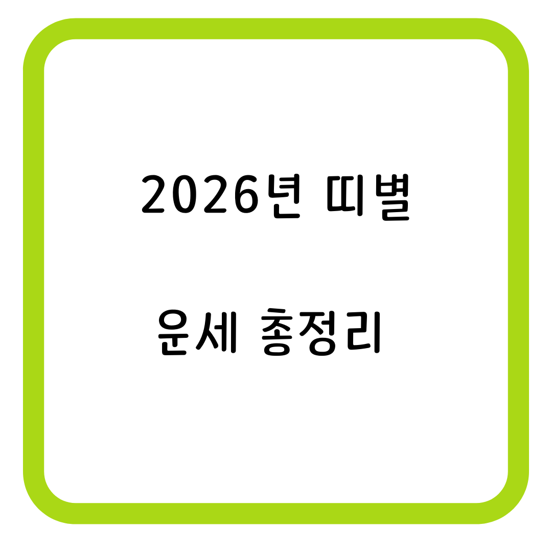 올해의 운세를 띠별로 확인하고, 재물운, 건강운, 애정운, 직업운 등 다양한 운을 미리 준비해보세요.