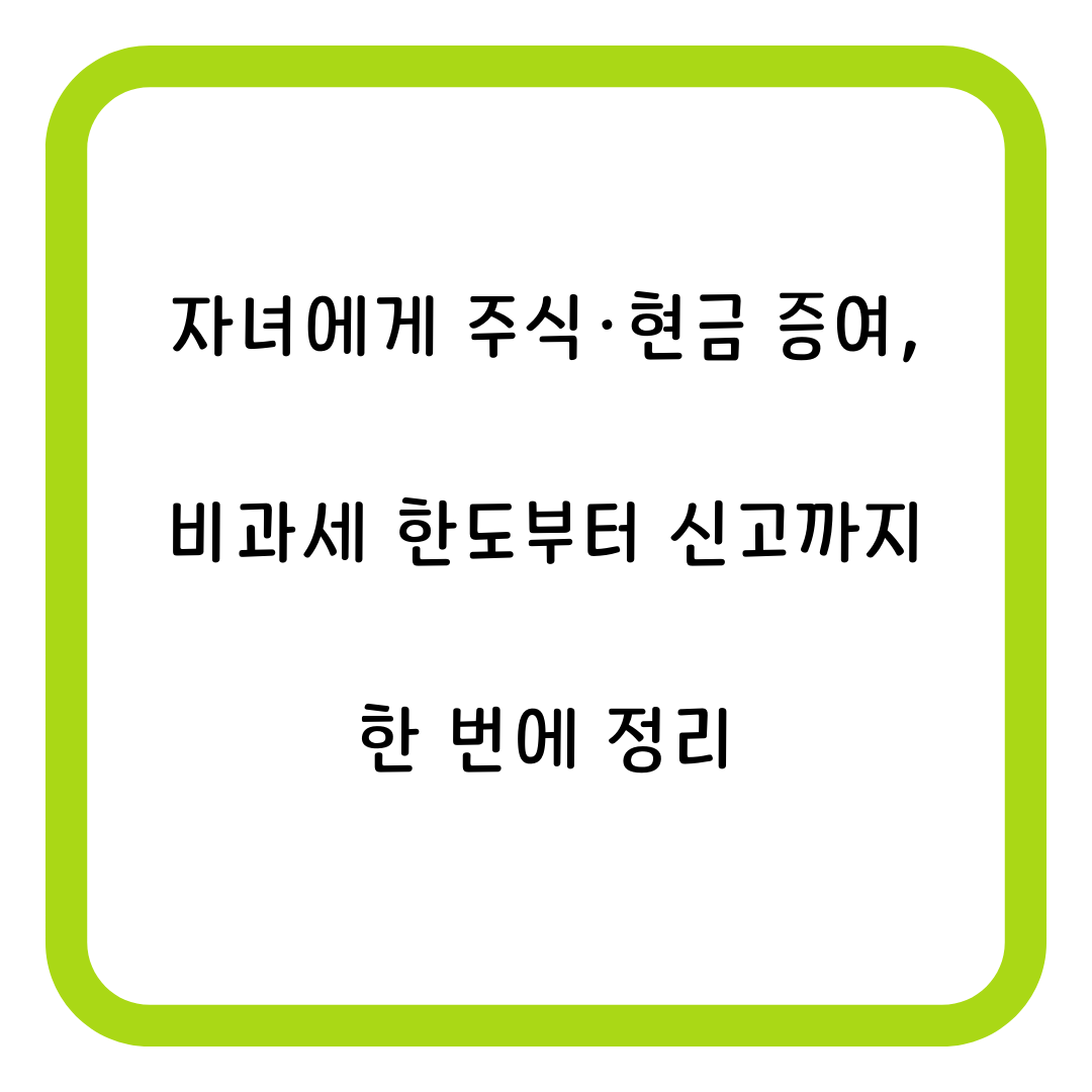 👨👩👧 자녀에게 주식·현금 증여, 비과세 한도부터 신고까지 한 번에 정리