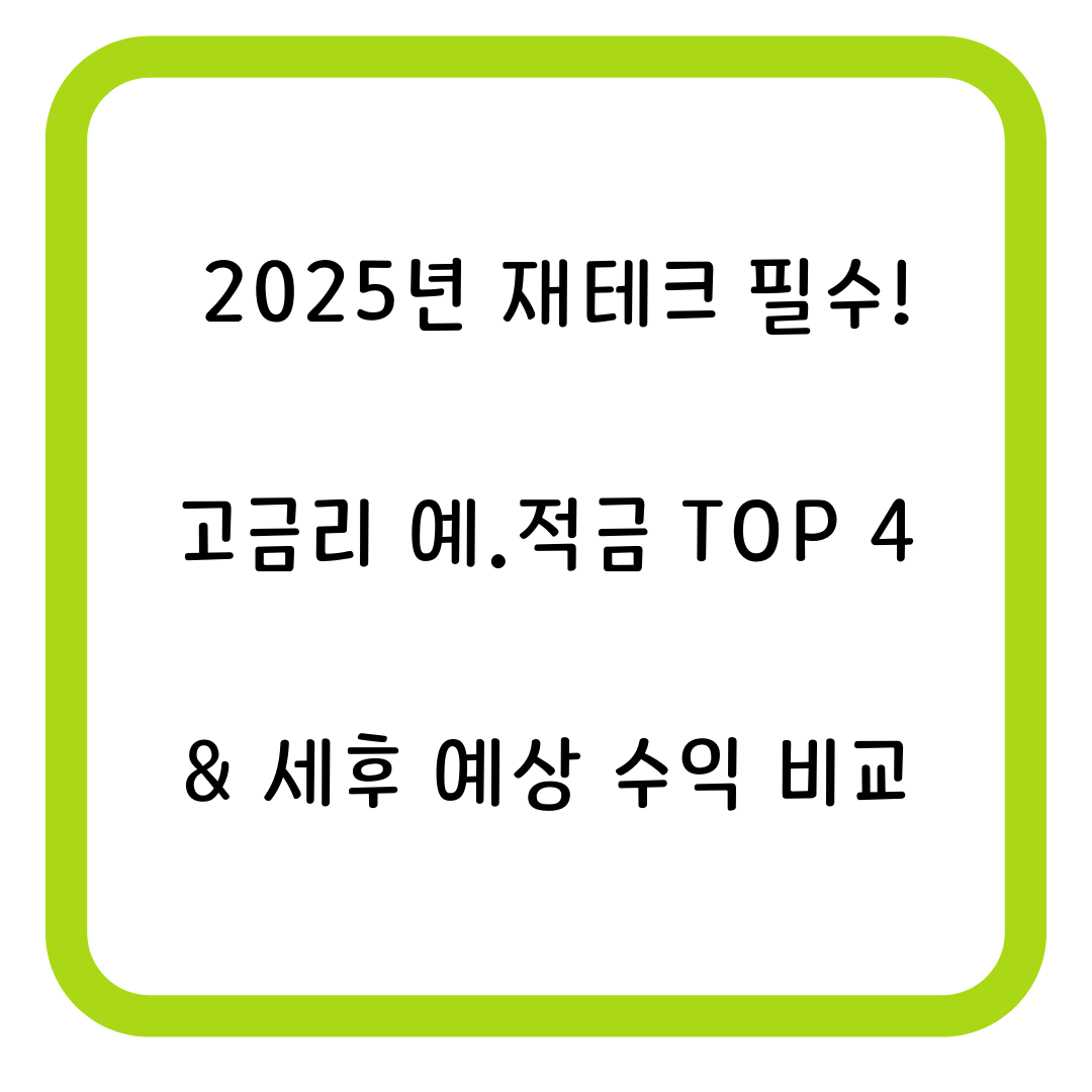 💸 2025년 재테크 필수! 고금리 예∙적금 TOP 4 & 세후 예상 수익 비교